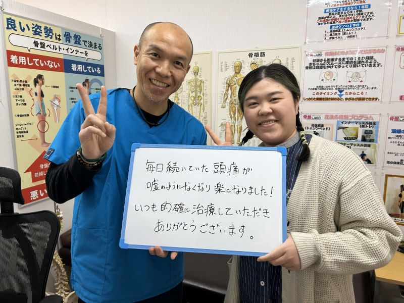 「頭痛があり、日々の生活に支障が出ていましたが、施術を受けて日に日に良くなっていきました!」